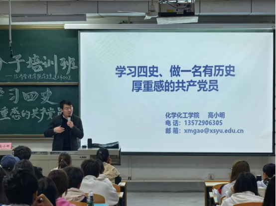 为加强党史、国史、改革开放史、社会主义发展史教育,全面贯彻党中央对“四史”教育的部署,11月5日,经济管理学院第五十四期入党积极分子培训班第二讲于鄠邑校区博览楼139教室举行。本次党课由化学化工学院党委书记高小明主讲,第五十四期全体入党积极分子参加。