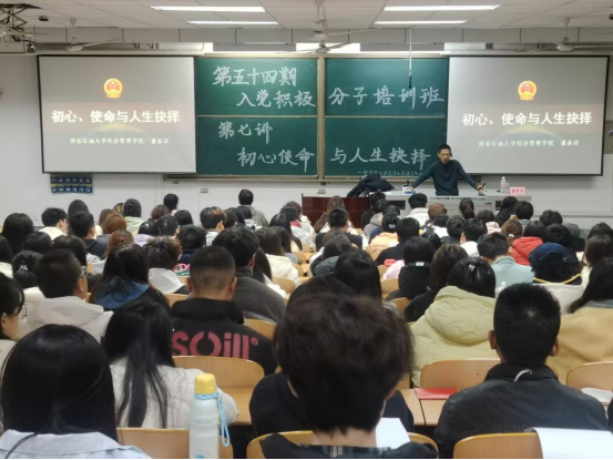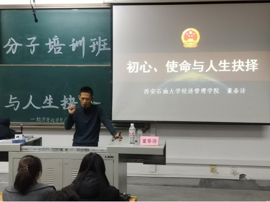 为深刻感悟中国共产党人的初心使命,不断提升入党积极分子政治觉悟,11月18日,经济管理学院第五十四期入党积极分子培训班第十三讲在鄠邑校区博览楼A134教室举行。本次党课由经济管理学院副院长董春诗主讲,第五十四期全体入党积极分子参加。