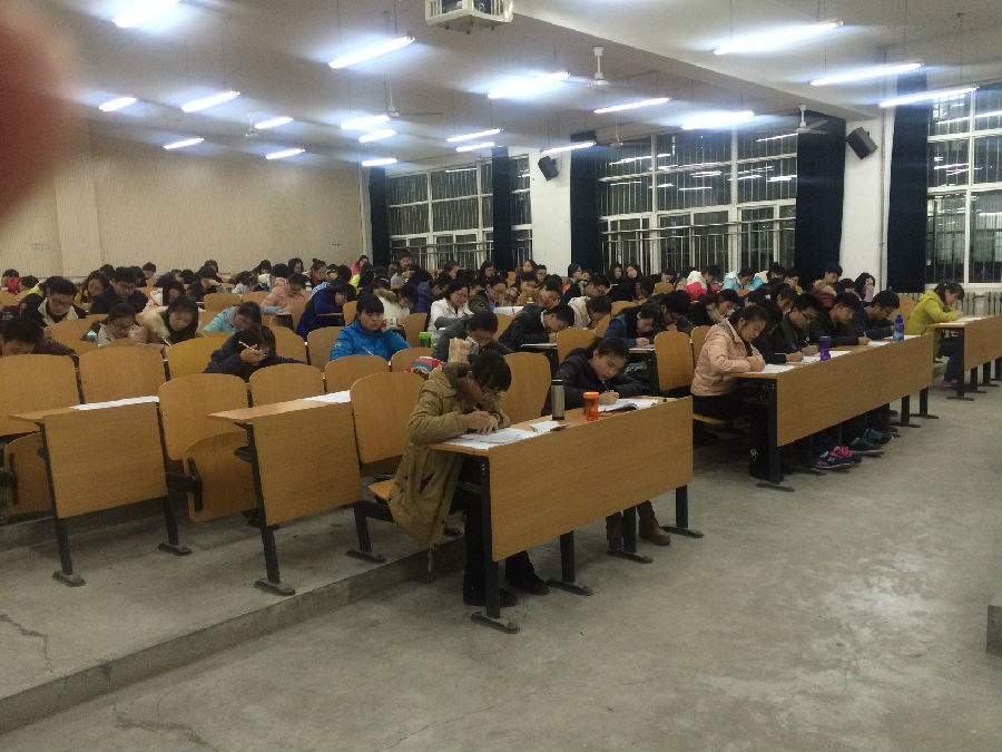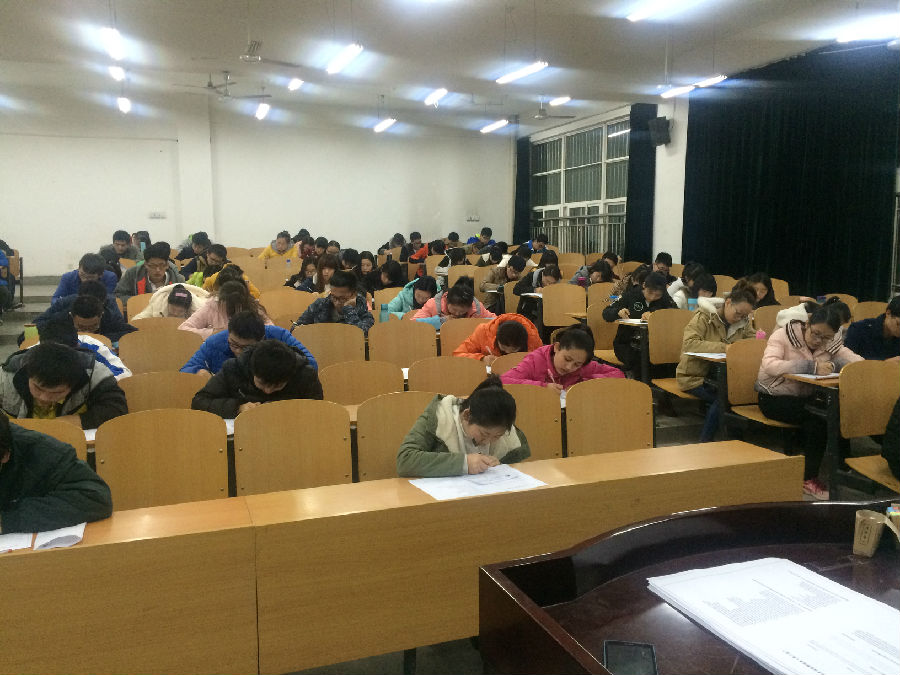 本月四级考试临近,为了提高2014级同学对全国大学英语四级考试的解题技巧,同时掌握学生们的复习状况,做好四级模考试最终冲刺工作。2015年12月3日晚19时,由经济管理学院2014级辅导员张倩老师与学生干部组织筹备的英语四级模拟考试于新校区B112、B114、B121、B123、B125、B119教室进行。