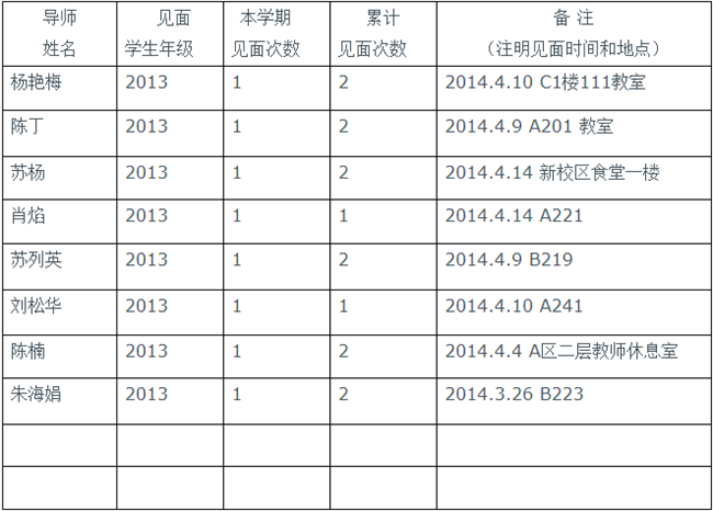 经济管理学院本科生导师与学生见面情况通报表