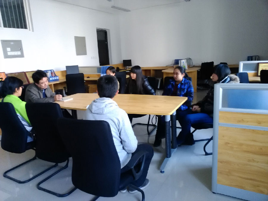 2015年11月27日,随着期中考试的结束,商管1501班王晶、王之翊、余欢笑、魏晓妍、卢文月、张越、肖文青七位同学与苟三勇老师在经管学院办公楼205房间召开了导师见面会。