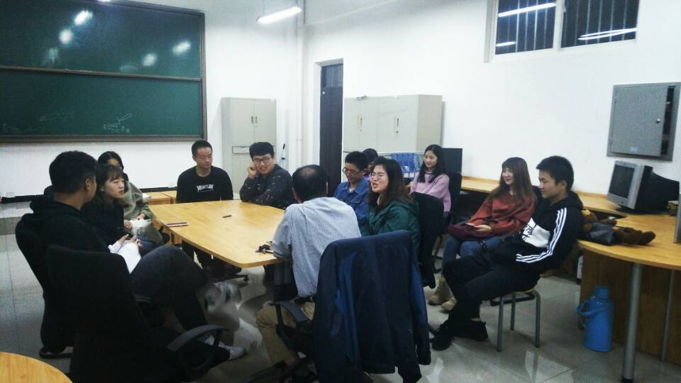 12月20日下午3点时,经济管理学院刘毅老师与其负责的 5名2016级学生在西安石油大学新校区经管楼203室进行了针对科研培养、学习、生活方面的交流与指导。5名2016级学生分别是:国贸1601班的后卫、王一任、涂梓仪、许晶晶和国贸1602班的宋晓雅。