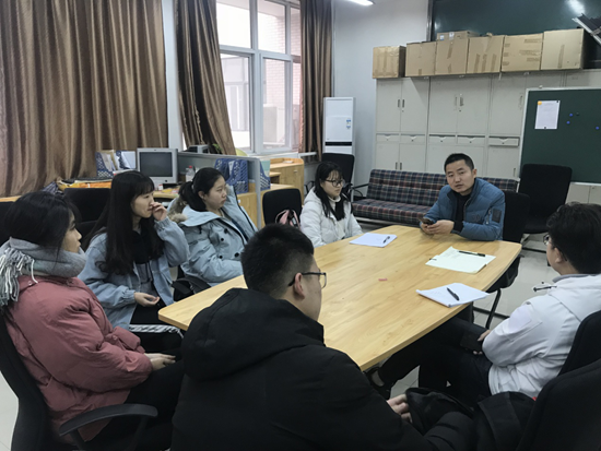 2019年1月4日星期五上午10点,刘军峰导师与2018级商务专业导师制成员:姬祥飞、汤思锐、牟静、赵梦远、张旭、张玉辉、姜仪于鄠邑校区经管人文楼208开展了2018-2019学年第一学期第二次见面会。