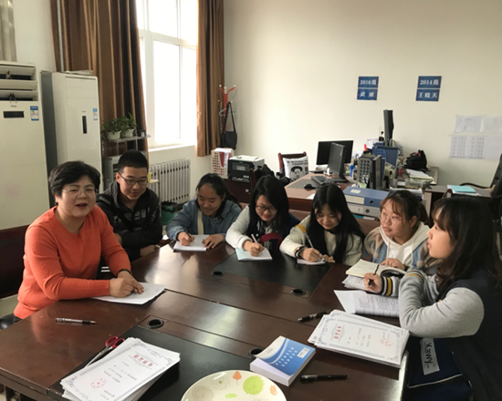 在次见面会上,尹晓娇导师先解释了为什么更换导师的原因以及询问了同学们的姓名及成绩,同学向导师讲述了本学期与上学期的区别,以及自己觉得这学期学习上的困难和生活中的苦难,导师教导同学们要多读书,并为下次见面会提供了主题,各人分享自己的读书感悟。