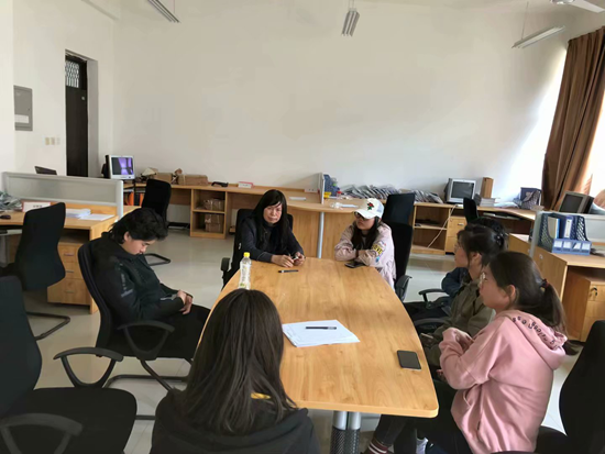 2019年4月15日杨惠贤导师与2018级商管1805班同学 李若妍 张文博 方金柱 冯昌举 刘欢 张沁睿 张少勉在本校鄠邑校区经管人文楼214进行了第一次见面会。
