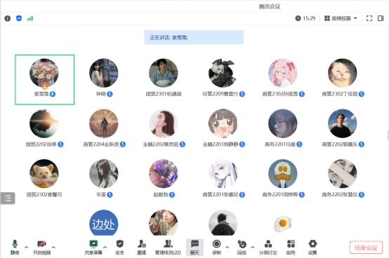 10月22日,经济管理学院经济系袁雪霈老师通过腾讯会议开展2023-2024学年第一学期第一次导师制见面交流会,与会学生共23名,17名二年级学生和6名一年级新生全部参会。
