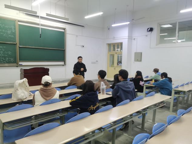 王小鹏老师首先简单地进行了自我介绍,关切地询问了每位同学的近况,并分享了在校的时间规划和自我认识的重要性。这种形式的见面会不仅让同学们对大学生活有了初步的了解,也让大家对未来的学习和生活充满了期待。简单介绍之后,王老师还针对不同年级的同学提出了具有针对性的发展建议。针对大一同学,王老师建议大家将学习的重心放到高数、英语等高学分、易挂科的课程,争取不要在日后带来不必要的麻烦。针对大二同学,王老师希望同学们能抓紧四六级考试,在未来的考研以及就业中取得优势。机会总是留给有准备的人的,大三同学不光要将目光放在自己的专业课上,争取取得一个良好的专业课成绩,更要在考研还是就业这个人生抉择上早做打算,提前准备。此外,王小鹏老师还给大家分析了我们院考研和就业情况,希望能够帮助同学们对自己的大学生涯有一个明确的规划并为之不懈奋斗。最后,王小鹏老师还表示同学们遇到问题时随时可以和老师沟通,对于同学们的成长,老师将全力支持。
