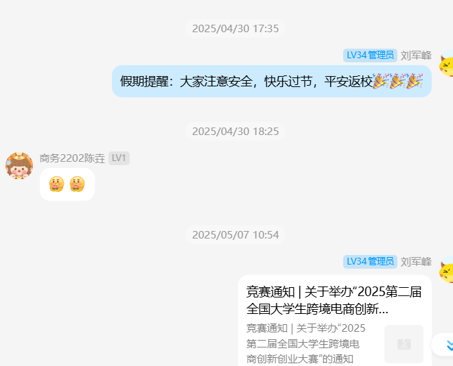 2025年11月16日下午3:00,刘军峰老师于经管人文楼208室指导导师制毕业生学生,要求其他非毕业班同学到场旁听。