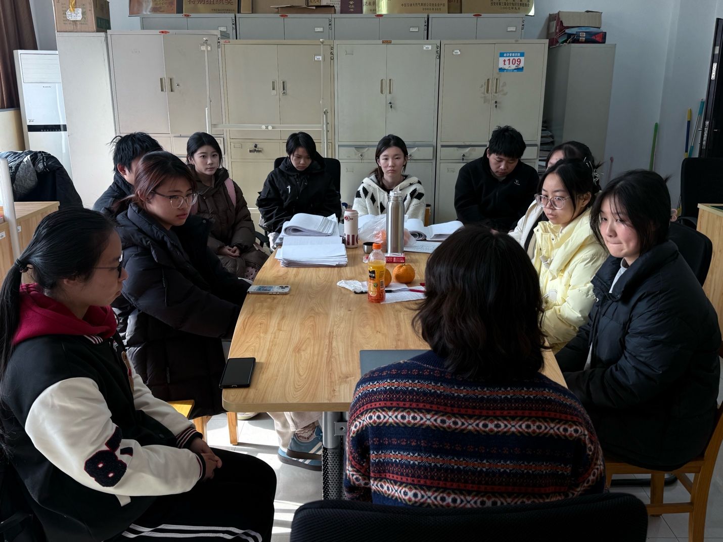 2025年12月4日中午,经济管理学院会计系安芮坤老师召开本学期导师制学生见面会,参会学生均为大一新生。本次交流主要围绕专业分流、考研规划与就业方向展开,旨在帮助同学们更好地明确大学阶段的发展路径。