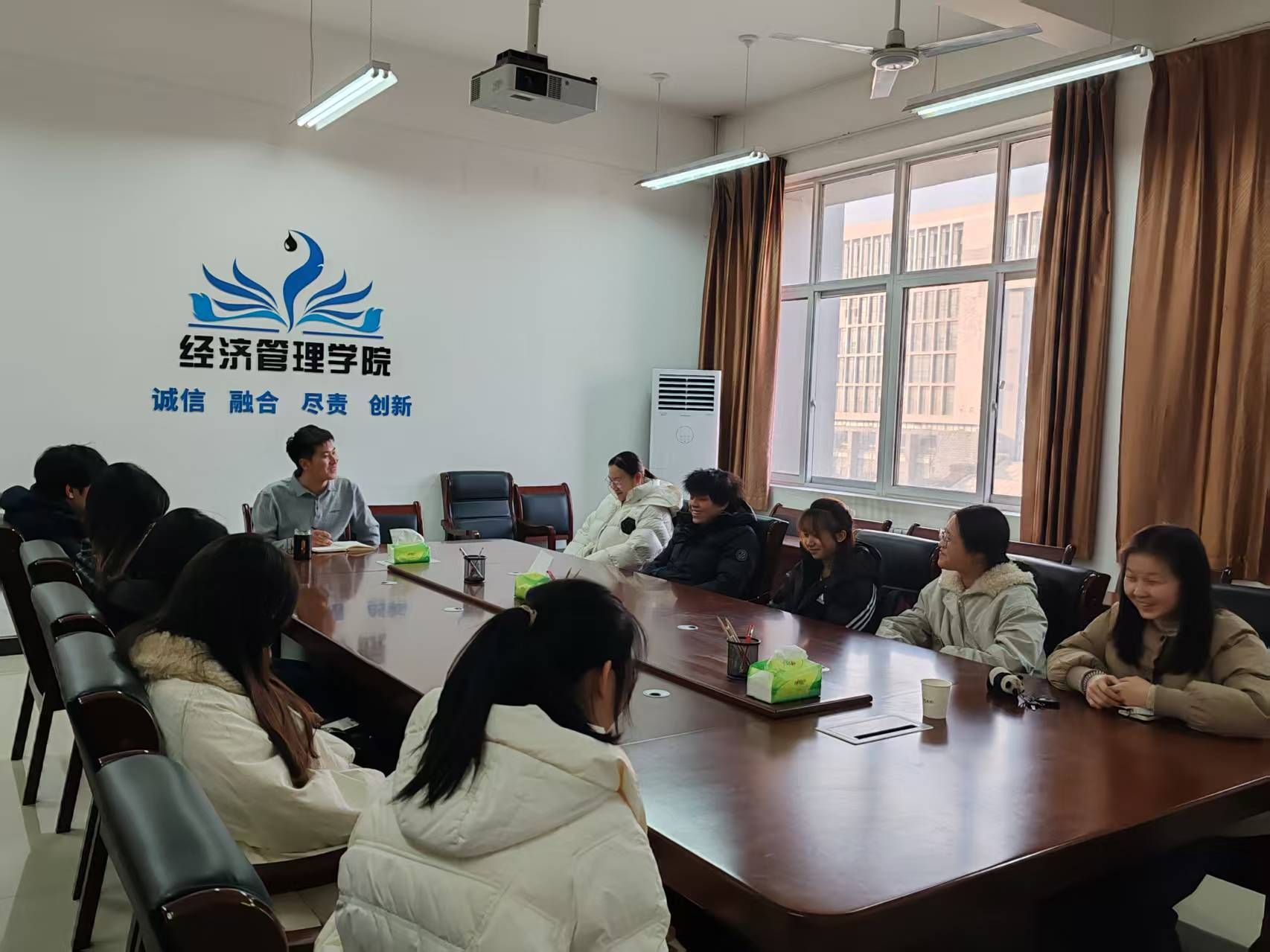 12月18日,经济管理学院辅导员王业林老师与2022-2025级导师制学生在鄠邑校区崇文楼305室召开本学期导师制学生交流研讨会。