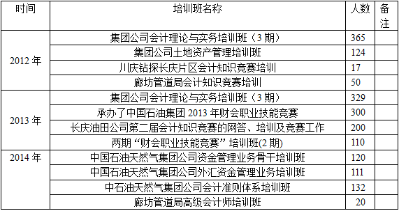 2013年8月,学院承办第三届中国石油天然气集团公司财会职业技能竞赛以及承担部分二级油田企业单位的赛前培训项目,此次培训授课以及竞赛题题库主要 由会计系教师完成。在培训阶段,十八个中石油集团的二级油田企业单位积极参与,我院教师利用暑假认真备课,精心授课,教学效果得到了学员们的一致好评;在 竞赛阶段,我院教师在出题、组题、审题的过程中公正保密,;初赛、复赛、决赛赛程紧凑,组织严密,过程规范。参与单位达到60余个,经过三轮角逐出冠亚季 军代表队,以及个人金银铜奖。