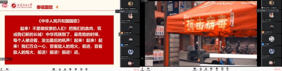 随后,全体与会师生共同观看了我校疫情防控工作开展以来的感人瞬间,西石大速度,永远是大家最安心的保障。林晗阳和李媛媛两位同学用坚毅的语气动员全体同学要牢固树立理想信念,疫情期间团结奋斗,努力扛起属于当代大学生的时代重任。在学校抗疫工作中,经济管理学院学生积极投身志愿服务,以行动表明抗疫决心,收集暖贴送爱送温暖,传递书籍停课不停学,发挥了示范引领作用,彰显了经管学子的青春风采。