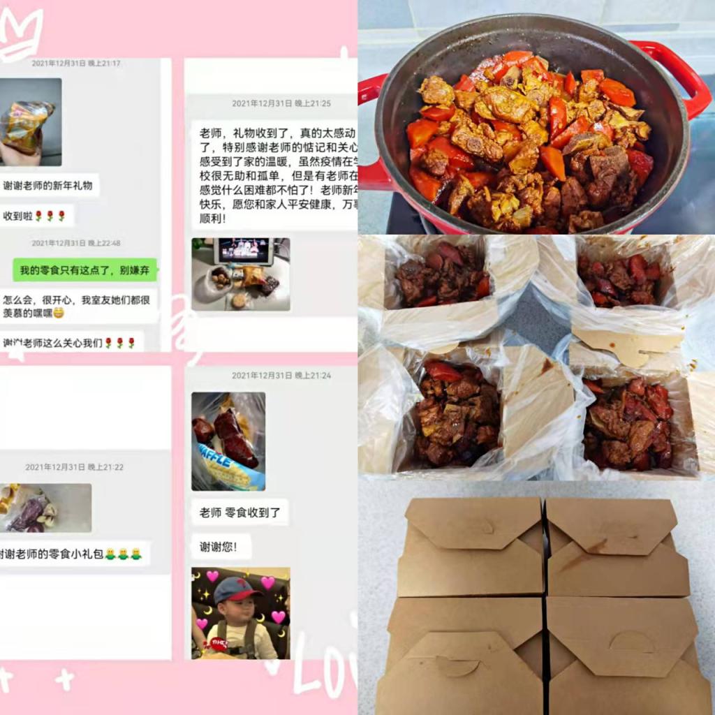 有一种甜刻入记忆,有一种香沉入心田。经济管理学院人力党支部朱海娟老师用了整整一下午的时间烘焙了两烤箱的蛋挞,并且和杨睿娟老师一同将刚出炉的食物第一时间送到研究生志愿者手中。夜幕衬托着食物腾腾热气暖到心间,冬日的萧瑟抵不过蛋挞入口的香甜,志愿者一天的辛苦也随着满满的甜蜜在冷风中消逝,金黄的蛋挞不仅甜了嘴巴更融了寒冷。一个人遇到好老师是人生的幸运,一个学校拥有好老师是学校的光荣,一个民族源源不断涌现出一批又一批好老师则是民族的希望。经济管理学院的老师践行了教师的职责与使命,他们以身作则的工作态度教会学生尽职尽责,他们无微不至的体贴与关怀更带给了学生爱与希望,如果疫情是电闪雷鸣的狂风暴雨,那经管师生情就是雨后最美的彩虹。