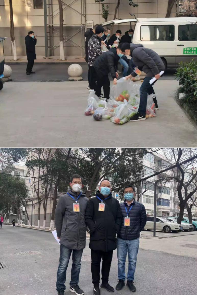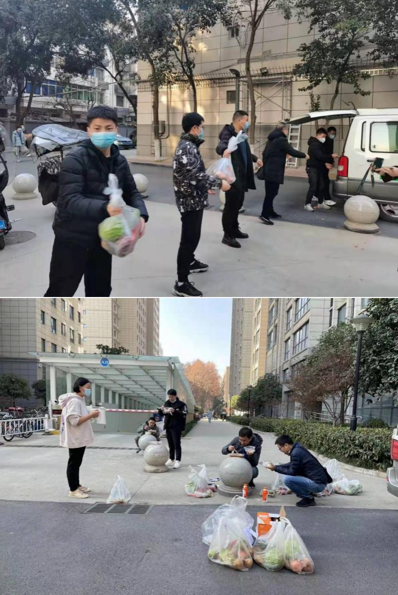 疫情之下的物资供应是保障人民群众正常生活的一项重要工作。为了将蔬菜更快地发放到每户教职工手中,学院教师党员顶着寒风在户外坚持工作,他们排成一队有序运送着蔬菜物资。寒气侵体四肢早已冻僵,即使是午休时间也坚守岗位。没有桌子石墩来凑,没有凳子就蹲下休息,饭菜伴着冷风送入口中,但是他们未曾有过一句抱怨。学高为师,身正为范,经管院的教师党员在危难时期甘于奉献、舍我其谁的精神值得点赞和敬佩。
