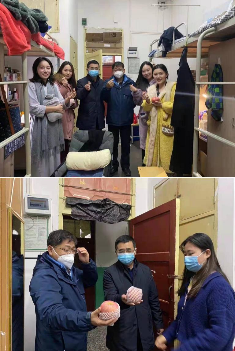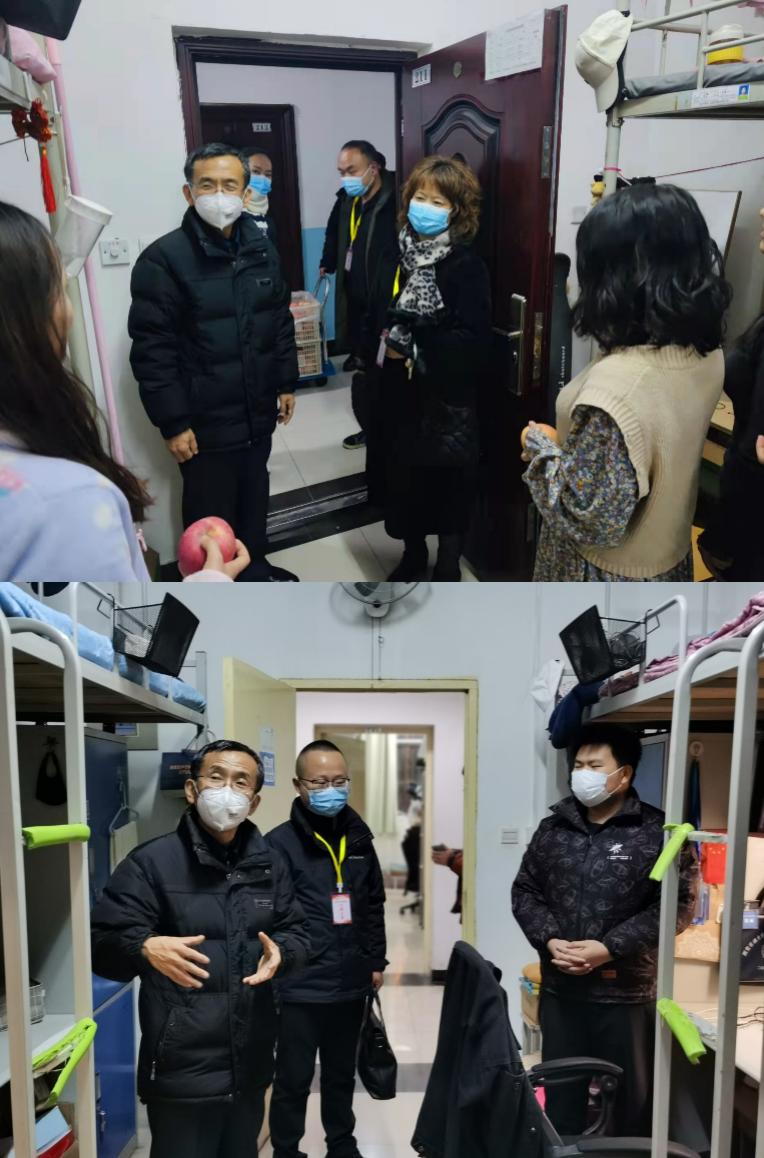 新年的钟声如约而至地敲响,面临疫情,广大同学只能在宿舍度过这个特殊的新年。越是佳节倍思亲,学校坚持以生为本,突出关心关爱,在新年来临之际,学校各级领导和老师主动深入学生宿舍,送上新年礼物,与同学面对面沟通近况,了解大家的所思所感所求,为大家传递温暖与祝福。