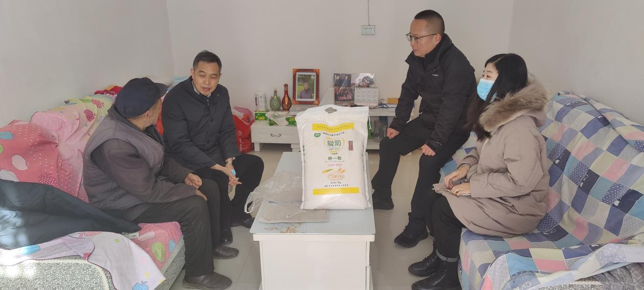 王宏卫书记一行首先赴坚固村村委会慰问了我校慕秀松、韩勇、张珣3名驻村干部,详细询问了驻村干部的工作和生活情况,并深入交流了近期乡村振兴工作的进展情况以及村民的生活现状。随后,在我校坚固村驻村干部张珣同志的陪同下,分别前往我院对口帮扶户孙志祥、王永财家中,为帮扶对象送上了米、面、食用油、牛奶等生活慰问品。