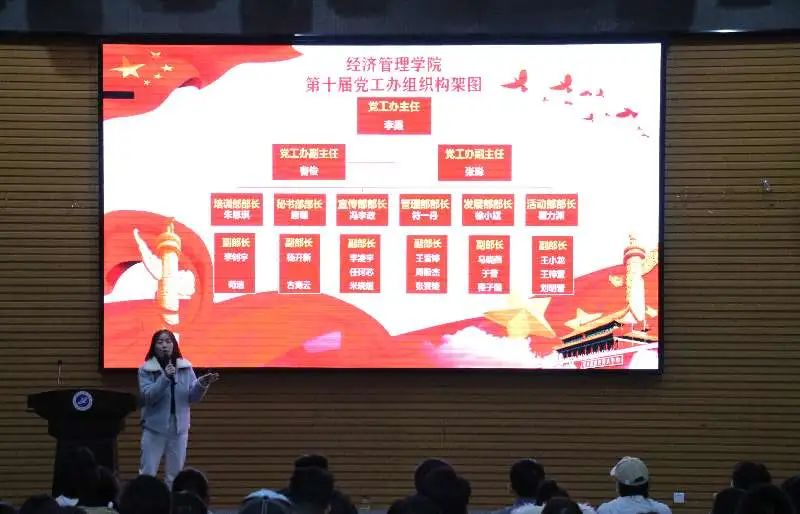 党工办副主任曹俊介绍了党工办的历史沿革、职能结构与历届工作开展情况。党工办各部门代表依次介绍各自部门的职能、成员、活动与规划。