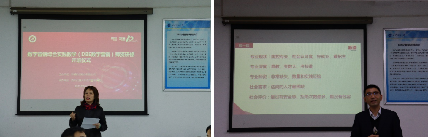 10月16日,由新道科技股份有限公司与西安石油大学联合主办的数字营销综合实践教学(DBE数字营销)师资研修在西安石油大学开班,来自陕西20多所高校30多位教师参加研修。
