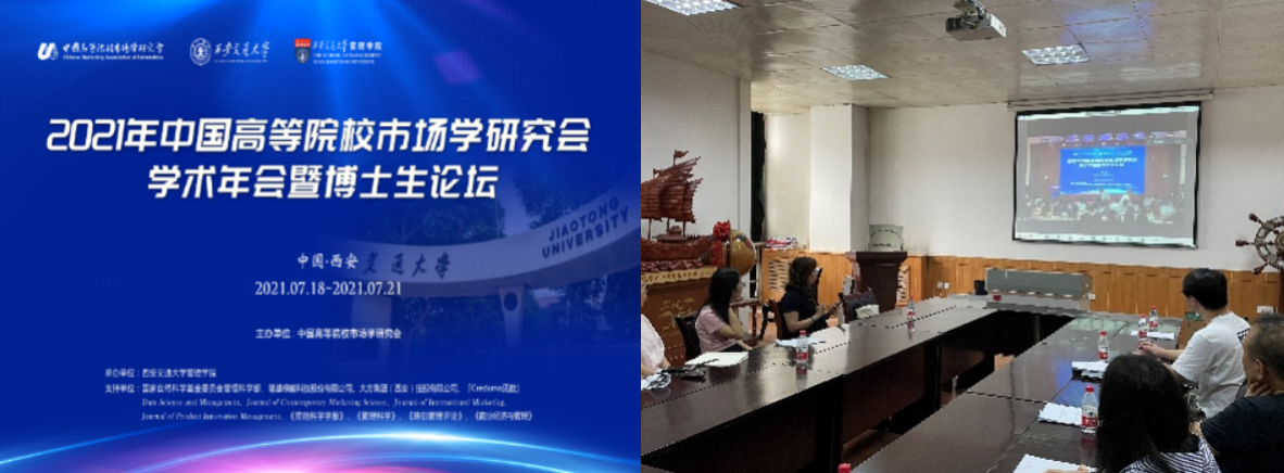 7月20日—21日,经济管理学院院长王君萍和企业管理系教师代表在雁塔校区第二教学楼1507在线参加中国高等院校市场学研究会(Chinese Marketing Association of Universities,CMAU)主办的学术年会。此次年会的会议主题为“高质量发展与营销创新”,旨在交流探讨高质量发展与营销创新研究的新形势与新趋势,分享高质量发展与营销创新的现实挑战和解决相关营销实践问题。