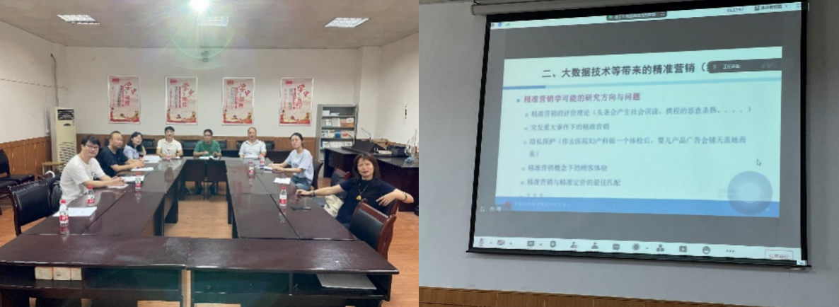 王君萍院长指出,利用假期坚持参加市场营销领域的学术年会和教学年会是市场营销师资培训的重要途径,特别是今年我院市场营销专业申报省级一流本科专业建设点,更需要从外部资源中汲取新理念为申报工作提供新想法和新思路。参会教师也表示,营销环境的复杂性与多变性要求市场营销专业教师定期更新自身的知识储备和专业技能。最后,王君萍院长与参会教师一起结合年会精神,围绕一流专业申请工作中的工作进展、存在问题和下一步努力方向进行集中讨论。