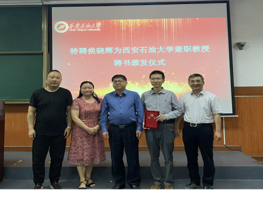 樊晓民总会计师简要介绍了西安石油大学和经济管理学院的发展现状,他强调,侯晓辉教授能加入我校经济管理学院做兼职教授是对学校尤其是经济管理院的巨大支持,将大幅提升学校管理类学科建设水平,增强人才培养质量。樊晓民总会计师为候晓辉教授颁发了兼职教授聘书,并代表学校对侯晓辉教授受聘为西安石油大学兼职教授表示欢迎和感谢。