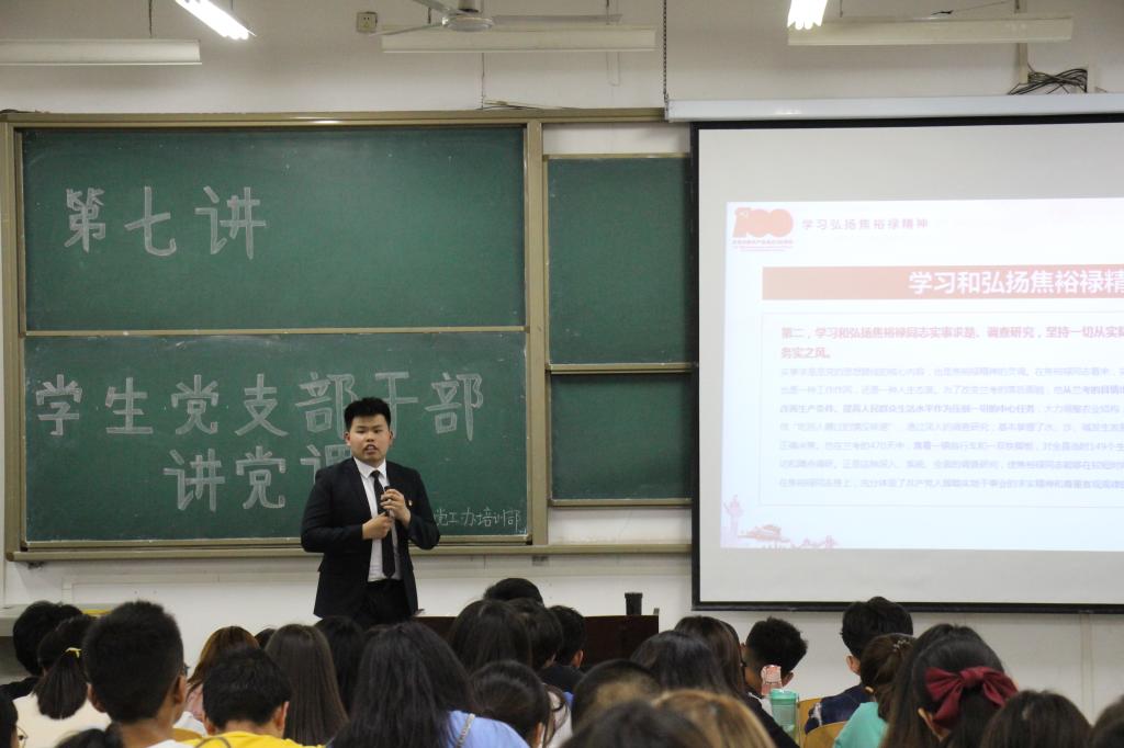 经济管理学院管科系学生第二党支部副书记姬祥飞同志以“学习焦裕禄精神”为题开展宣讲。他介绍了焦裕禄同志的生平事迹和焦裕禄精神的实质内涵,指出大学生要树立正确的世界观、人生观和价值观,扣好人生第一粒扣子。