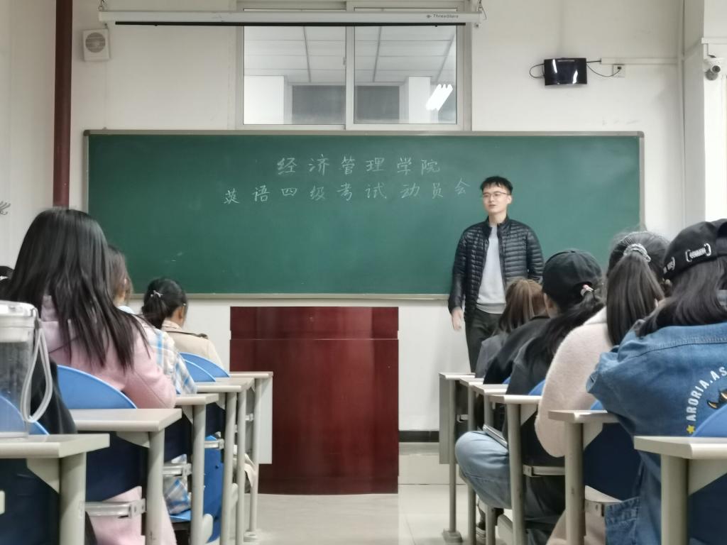 为进一步调动2020级学生参加大学英语四级考试的积极性,增强学生对大学英语四级考试重要性的认识,帮助学生掌握正确的复习方法和科学的应试技巧,2021年3月18日,经济管理学院在鄠邑校区A区教学楼249教室召开大学英语四级考试动员会。学院2020级辅导员史阳和部分报名学生参会。