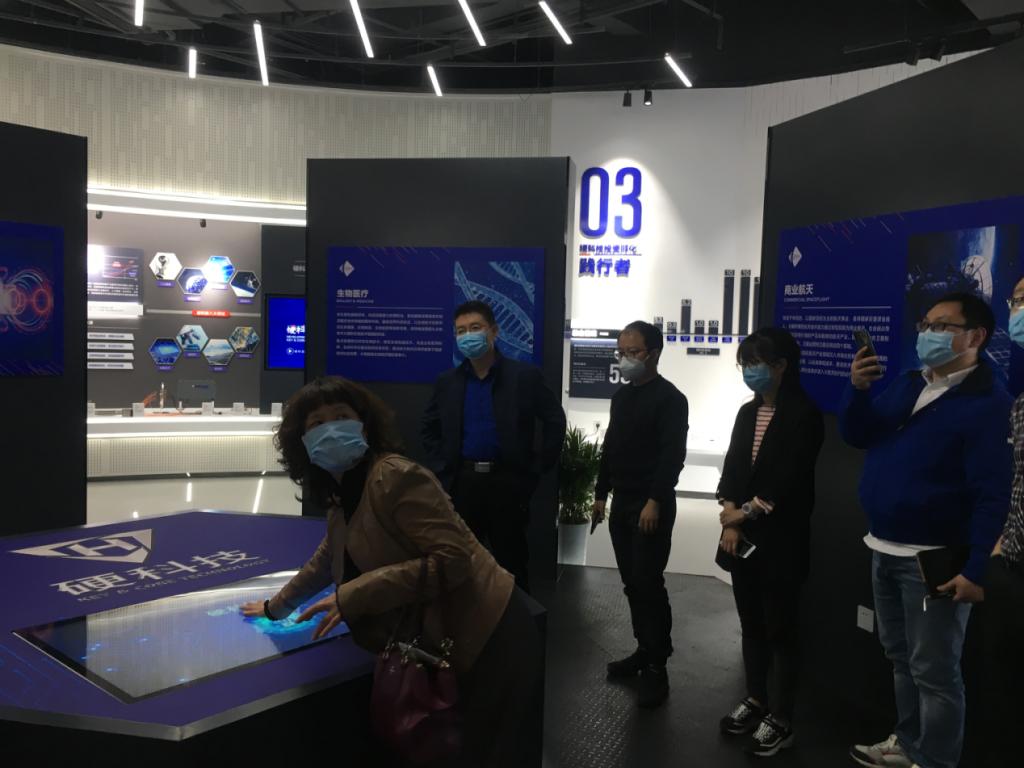 在中科创星众创空间,调研组详细听取了该单位依托西光所、打造“研究机构+天使基金+孵化器+创业培训”的科技创业生态网络体系的发展历程和主要成果,特别是以人工智能、生物医疗、商业航天、先进制造、光电芯片及光学领域、新一代信息技术六大模块为核心的“硬科技”产业集群,已成为我国对“硬科技”内涵的主流认识。调研期间,王君萍院长受邀留下掌印,成为第118位“硬科技er”。