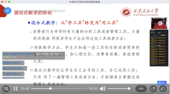 根据教育部关于疫情防控期间 “停课不停学,教学不延期”要求。学院老师积极利用互联网和信息化教育资源为学生提供学习支持。经济管理学院企管系黄聿舟老师,作为17级营销专业的班主任和《消费者行为学》的任课老师,积极进行班级组建、开展在线教学组织、在线教学过程设计等方面多措并举,做好学生健康成长的指导者和引路人,同时也为“停课不停学,教学不延期”做好充足的准备。