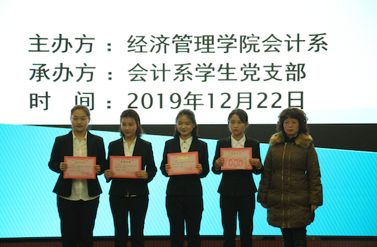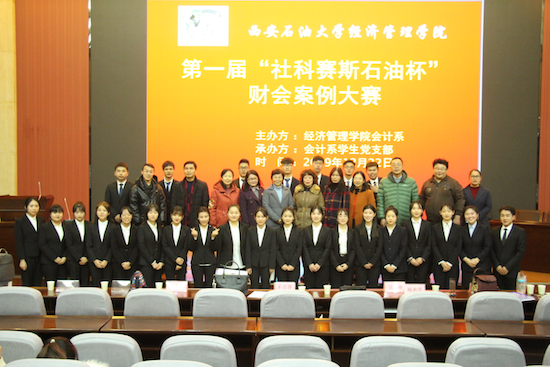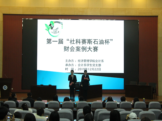 2019年12月22日,由实验管理处和经济管理学院发起,经济管理学院会计系主办,会计系第一学生党支部和第二学生党支部承办的我校首届“社科赛斯石油杯”财会案例大赛在鄠邑校区弘石报告厅成功举办。作为经济管理学院“不忘初心、牢记使命”主题教育中“师生融合”的一项重要活动,经济管理学院院长王君萍、副院长吴勋、会计系党员教工、无党派人士、部分学工干部以及会计系200多名师生参加了本次活动。