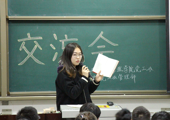 为贯彻落实习近平新时代中国特色社会主义思想,加强党性修养,同时激发同学们的入党热情,营造书香校园氛围,坚定政治信仰,树立正确的价值观,12月4日晚,由经济管理学院党委主办,学生党建工作办公室承办的“不忘初心、牢记使命”读书分享交流会于鄠邑校区教学A区139教室举行。经济管理学院党工办学生干部、学生党员代表、入党积极分子近200人参加。本次交流会由杨子奥、赵淼同志主持。