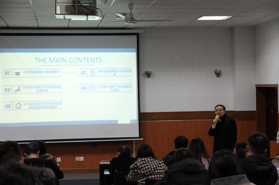 启动仪式后,罗剑朝教授学术报告会顺利举行。我院院长王君萍教授、副院长李俊亭副教授以及部分教师与研究生共100余人参加报告会。罗剑朝教授以《金融改革创新与乡村振兴》为题,就金融的定义与主要特征、金融发展现状与存在问题、乡村振兴背景下金融改革的主要内容、金融创新发展、金融改革创新的难点与未来趋势等内容进行了分析与介绍,并就课题申报中的选题标准、申请书的逻辑自洽性等问题与与会老师进行了深入探讨。罗教授的报告深入浅出、内容丰富、信息量大。与会老师聆听完报告后纷纷表示,深受启发,收获颇丰。