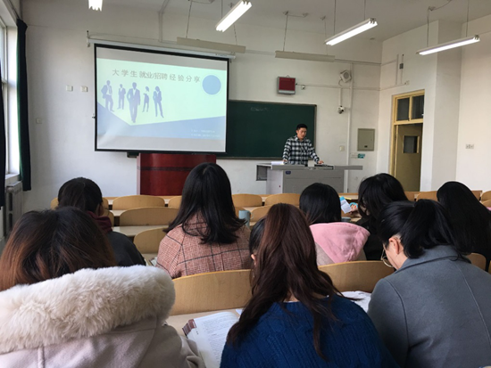 11月15日,经济系学生党支部组织毕业生党员召开招聘经验交流会。已签约工作的同志分享了求职经验,并希望其他同志要端正态度,在面试前做好充分准备,尤其是国贸专业的学生,在面试前尽可能的准备一篇英文自我介绍,了解招聘公司信息,不要打无准备之仗。
