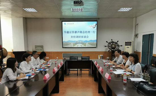 9月6日上午,华鑫证券西安南二环营业部总经理廖声隆、副总经理王天福、营业部总监伍丹、机构部经理蒋雯丽等一行四人来经济管理学院调研,并就院企合作事宜进行座谈。经济管理学院院长王君萍教授、金融学专业带头人石冬莲教授、李春霄博士、李善燊博士出席座谈会。座谈会由李春霄老师主持。