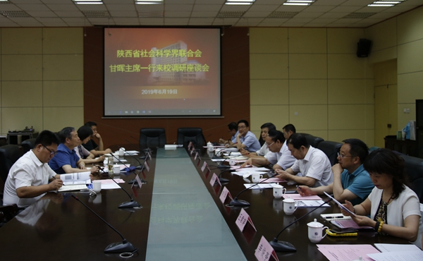 6月19日下午,陕西省社会科学界联合会主席甘晖,副主席、党组成员高红霞一行4人来校调研,并就2018年度陕西省社科界重大理论与现实问题研究项目——《自贸区带动陕西园区经济协同集群发展的机制及路径研究》进行座谈。座谈会在雁塔校区第一会议室召开。我校党委书记、校社科联主席赛云秀,校长李天太,副校长、校社科联常务副主席杨战社,副校长李华,宣传部、科技处、经济管理学院负责人及课题组成员参加座谈会。座谈会由杨战社副校长主持。