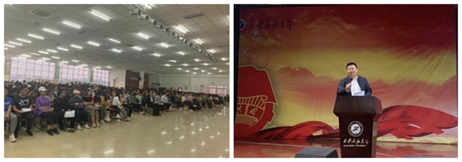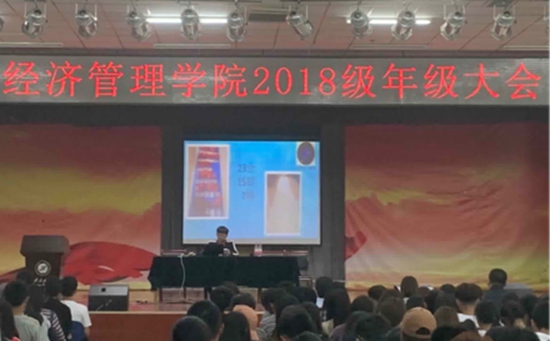 2019年4月24日晚上19:00,西安石油大学经济管理学院在腾辉大学生活动中心召开2018级年级大会,国际交流处负责香港项目的王老师、经济管理学院党委副书记赵海涛老师、2018级辅导员尹晓娇老师、陆晓寒老师与2018级600余名学生参加本次大会。
