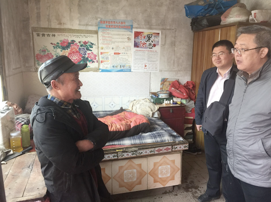 随后闫书记一行又来到孙志祥老人家中。孙志祥老人已经75岁,由于年迈,生产热情不高。闫书记与其他同志一起,对孙志祥老人进行了耐心的开导和积极的鼓励,并于他一起研究新一年拓展生产内容,开展新形式生产的相关问题。