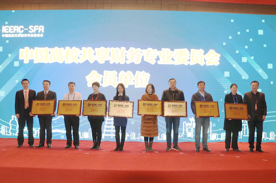 12月22日下午,共享财务专委会分论坛在陕西宾馆大会堂2-5渭南厅举行;共享财务专委会秘书长马建军出席会议并在共享财务专业分论坛上作开场致辞,共享财务专委会成员、院校代表、政府代表、企业等100余位专家学者出席参与了分论坛。共享财务专委会总指导,财政部会计司原司长刘玉廷教授就智能财务应用的顶层设计及相关计划做了主题报告;接着共享财务示范基地代表院校及企业代表在圆桌论坛上对共享财务产教融合校企合作探索进行了深入交流,并由共享财务专委会向示范基地及会员单位授牌。经济管理学院副院长吴勋和会计专业负责人杨惠贤教授代表我院接受授牌并正式加入中国高校共享财务专业委员会会员单位。