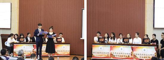本次比赛由2016级学生干部李鑫浩、陈悦同志主持,共分为必答题、抢答题和风险题三个环节。比赛中,六组由各党支部选拔出的优秀选手在答题环节展现出非凡的实力,尤其在抢答环节,更是赛出了大学生党员应有的风采。最终2015级商管学生党支部获得本次比赛一等奖,并由闫大维书记为他们颁奖。