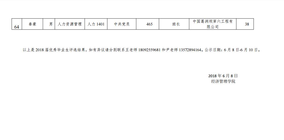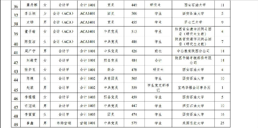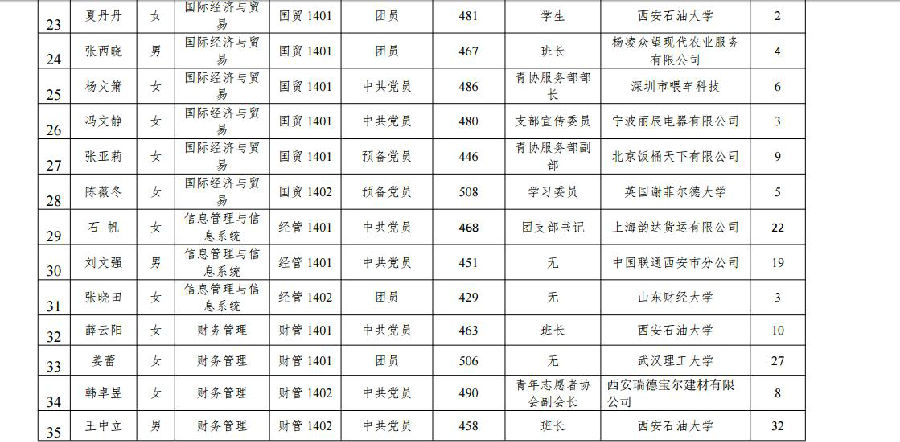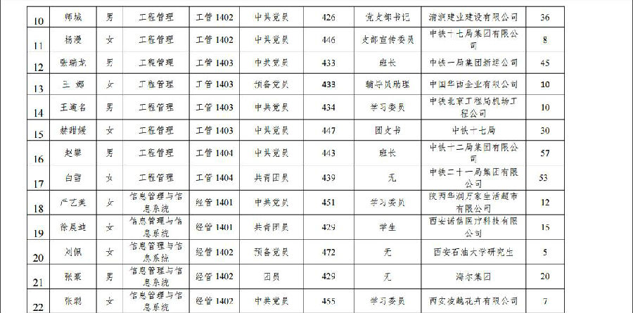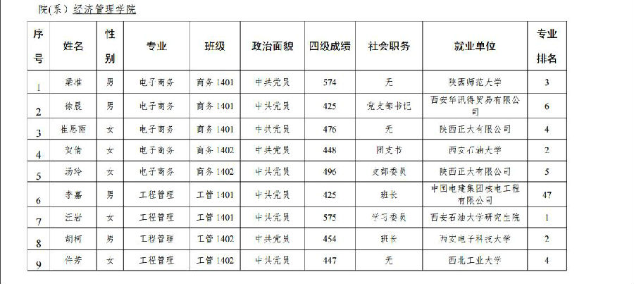 西安石油大学2018届校级优秀毕业生名单公示