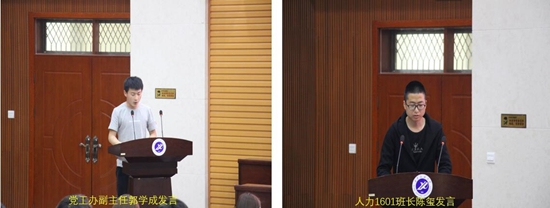 接着,党工办副主任郭学成及人力资源管理专业的三位党员发展对象,分别发表了自己对于党的十九大新思想的体会与感悟;人力1601班长陈玺就学生干部如何做到砥砺奋进这一问题谈了自己的几点心得。