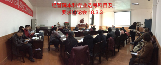 2018年3月3日,应我校本科专业(类)选考科目工作通知的要求,我院召开“经管院本科专业(类)选考科目讨论会”。参会人员有教授委员会成员、学院班子成员、各专业带头人、各专业负责人、综合办、教学办人员。