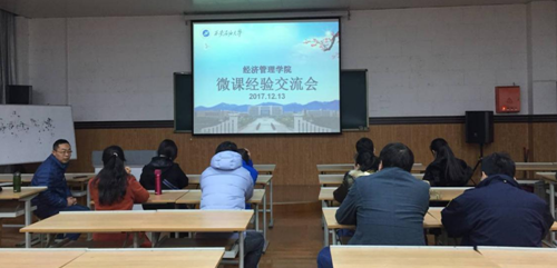 上届微课竞赛中获奖的优秀教师徐文静、李春霄、陈丁分别为大家分享经验。三位教师资料准备充分,将自己的经验、教训倾囊相授。三位教师从微课的特点、选题、PPT设计、录制细节、后期制作要点等方面做了详细讲解,强调了微课“短、小、新、精”的特点,强调了微课“one to one”的性质,强调了微课是一个“自编、自导、自演”的过程。三位老师的分享对本届报名参赛教师来说无疑是一场及时雨,为大家下一步的工作提供了非常有价值的信息。