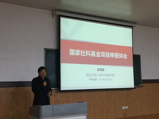 2017年11月22日下午,我院在雁塔校区东阶101举办了《国家社科基金项目申报经验交流》研讨会。会议由王君萍院长主持,2017年国家社科基金项目主持人吴勋博士、赵需要博士、李春霄博士分别作了报告。我院50余名师生参加了研讨会。