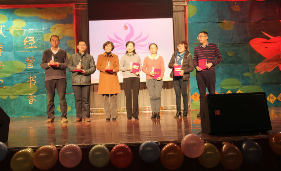 活动伊始,马行天书记致新年贺词,他回顾了学院2016年的主要成绩,对全体师生表达了新年祝贺;赵海涛副书记宣读了学院2016年“我最喜爱的老师”表彰决定,并由学生代表为获得该项称号的10名教师颁奖。刘冰主任宣读了学院“书香校园”建设活动2016年表彰决定,共表彰“书香年级”1个,“书香班级”7个,“书香之星”54人,并要求“书香校园”建设活动要继续扎实、稳步、持续的开展。
