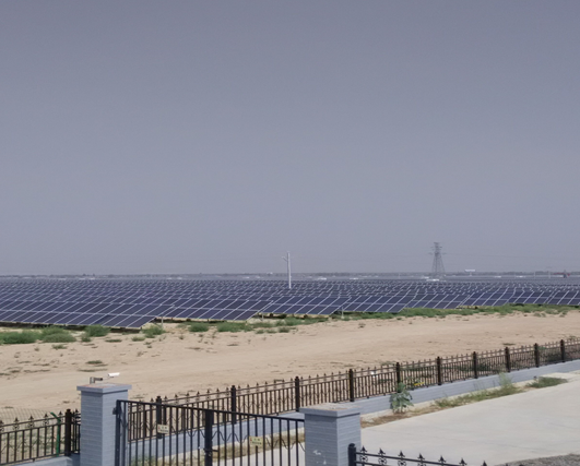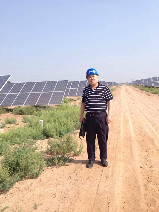 8月8日,李志学老师一行人走访了陕西定边昂立100mwp光伏发电厂。座谈中,李志学老师对公司给予项目的关心和支持表示感谢,简要介绍了此次调研的具体情况,详细询问了公司有关光伏发电的具体情况,熟悉了光伏发电的技术工艺、设备运营、发电量影响因素、光伏发电上网价格等部分内容,了解了光伏发电在资源利用和环境保护方面的利弊。随后在马站长的陪同下考察了光伏发电现场运营,进一步加强了师生对光伏发电原理的认知。光伏发电过程中,通过一系列的光伏板和太阳的作用发电,产生的电流是直流电,需要逆变器这个核心技术将直流电转换成交流电,然后进行升压等处理上网输出。光伏板主要有单晶硅和多晶硅两种,单晶转换效率高但成本也高。光伏发电场如图1.