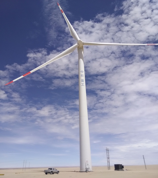8月11日,李志学老师走访了格尔木力腾新能源有限公司。该公司主要经营风力发电,座谈中公司负责人与李志学老师就风电运营方面进行详细的讨论,主要是风力发电项目选址、设备选用、风机种类、技术工艺等,并且对风力发电项目对环境方面的影响进行分析,指出了风力发电在合理利用风能、防止风沙等方面的积极作用和风机在发电过程中产生相应的噪音等不足。随后李志学老师一行人深入风机作业现场,参观了主要的工艺设备,认真了解风机发电原理,加深了对风力发电知识的认知。风力发电是风机利用风能带动叶片旋转,产生动能,通过发电机将动能转化成电能,然后输出电能到变压站,最后并网。其中风机有三大核心设备,分别为变桨、主控系统和变频器。风机基本建立在上风向,根据风速大小进行自我保护。风力发电产生的电流为交流电,不同于光伏发电需要用逆变器转换电流。风机如图2.