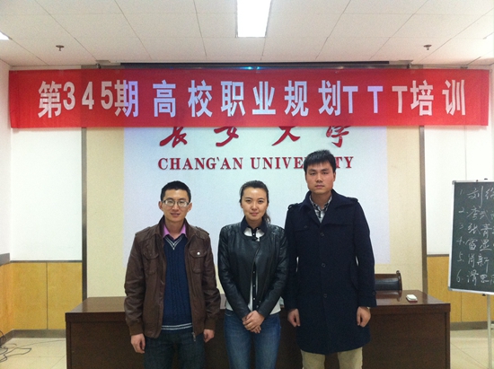 了在长安大学举办的“第345期TTT高校职业规划教学培训”。培训过程中各位辅导员认真学习,积极参与各项活动,均顺利获得了相关培训证书。参与培训的