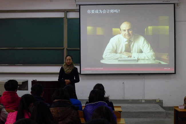 12月20日上午,学院邀请英格兰及威尔士特许会计师协会(ICAEW)香港地区总监倪佩明女士在新校区B208教室为学院首届会计学(国际注册会计师ACA)实验班学生做专题讲座。