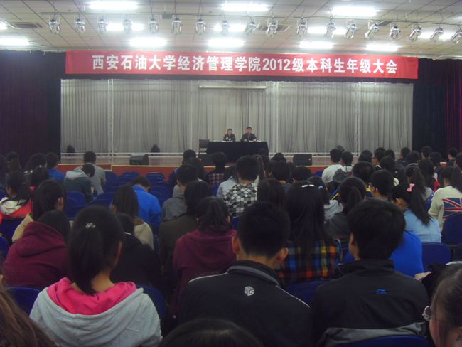 2013年3月7日晚19:30,经济管理学院2012级本科生年级大会在腾辉大学生活动中心成功举行。2012级辅导员武威老师和宋睿老师出席了本次大会。